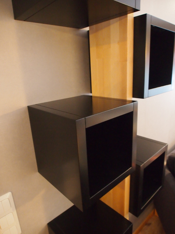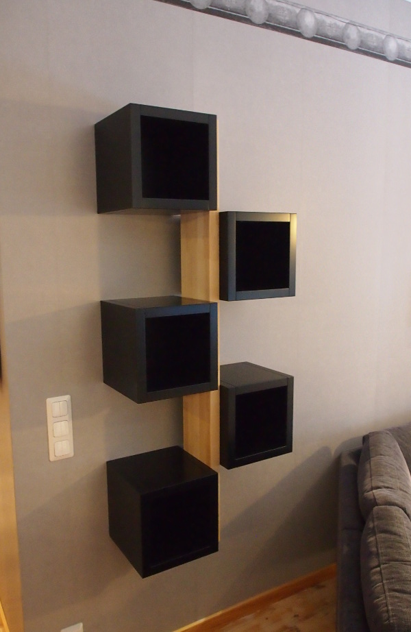 Uusin huonekaluprojektissa tehtiin hieman erillainen hyllykkö. Olohuoneen hyllyjen tarve on muuttunut, kun kirjojen keräily on vähentynyt, joka vaikuttaa myös olohuoneen sisustukseen. Hyllytilaa tarvitaan kuitenkin monille koriste- ja käyttöesineille, jolloin hyllytila ei tarvitse olla kovin suuri.