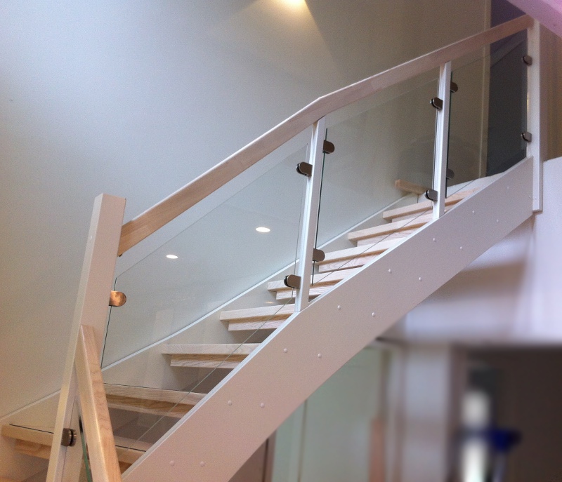 Tässä esimerkki lasikaiteesta L-portaassa: